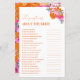 Viel Spaß beim Brautparty/Bachelorette mit diesem coolen Spiel mit hübschem Rosa und Orange Aquarell, floral und bearbeitbarem Text. Passen Sie es an, wenn nötig, indem Sie auf "Bearbeiten mit dem Design-Tool" klicken.