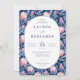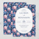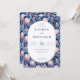 This elegant wedding invitation features a vibrant floral pattern with pink and blue flowers, creating a lush and inviting backdrop. The design includes an oval frame with classic serif typography that adds a formal touch to the layout. Customizable text fields allow for personalization of names, dates, and locations, making it perfect for a memorable celebration. The overall mood is one of warmth and elegance, ideal for couples looking to add a touch of nature-inspired beauty to their special day.