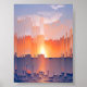 Vibrant Glitch Sunset Skyline Poster