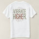 Der T - Shirt enthält den Text "Vibrate Higher" in einem lebhaften Farbspektrum. Jeder Buchstabe fließt wie eine Welle in den nächsten und schafft so einen dynamischen und dynamischen Look.