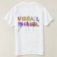 Le t-shirt présente le texte "Vibrate Higher" dans un spectre vibrant de couleurs. Chaque lettre s'écoule dans la suivante comme une vague, créant un look dynamique et énergique.