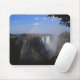 Victoria Falls horizontale Fotos gedruckt und Geschenke zeigt ein schönes Farbfoto von Victoria Falls in Afrika mit einem Regenbogen, der in einen strahlend blauen Himmel schießt, aufgenommen von Kurt Keller mit einer 35 mm Kamera in Simbabwe während einer Afrikanischen Safari.