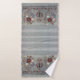 Victorian Greek Russian Design Boho Bath Towel Set is a striped gray boho with red flowers