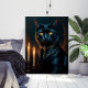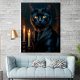 Bring the grandeur of medieval art into your home with this medieval style gallery wall art print. Victorian elegant gothic black cat with piercing, glowing amber eyes, set against a dark matte background. The portrait creating a moody dark academia aesthetic with cinematic lighting.