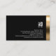 Ce vidéographe professionnel impressionnant, audacieux carte de visite noir, présente une élégante bande de reflet en or fausse/photographique sur la bordure inférieure. Votre nom et votre titre apparaissent juste au-dessus de cette bordure à motifs, sur un arrière - plan noir jet. Le même thème à motifs apparaît au dos de la carte, sauf que la bande est sur la bordure droite. Le logo et les coordonnées de votre entreprise apparaissent dans la section noire de la carte. Ce design carte de visite fait une première impression saisissante et est parfait pour les grands impacts, actifs, mode, style, chic, professionnel, moderne, sophistiqué, abstrait, photographie, imagerie, tournage, film, photo, thèmes artistiques.