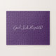 Das lila Puzzle in Solid beinhaltet "Viel Glück, [NAME]" in einem Schriftart mit weißem Skript in der Mitte. Personalisieren Sie den lustigen Text in der Sidebar. Das ist ein großartiges Geschenk für jemanden, der eine schwierige Aufgabe Liebe hat. Copyright ©Claire E. Skinner. Alle Rechte vorbehalten.