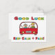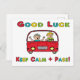 Viel Glück Driving Test zeigt einen Lernertreiber, der den Test mit einer Viel Glück-Meldung und einem unten Behalten Hinweis für Ruhe und Durchlauf durchführt. Ein lustiges Design für diejenigen, die ihre Prüfung machen wollen.