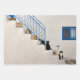 Zahlreiche Katzen verschiedener Farben, die auf den Treppen einer weiß gekalkten Treppe mit einer blauen, schmiedeeisernen Treppe in einer Gasse von griechischen Dörfern, Cyclades, Ägäische Insel, Griechenland. Diese Packpapiere sind eine Geschenkidee für Katzenliebhaber. Ein niedliches Foto mit bezaubernden Katzen von Katho Menden.