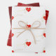 VALENTINS DAY - IMITATS GOLDFOLIE: Drei separate Packpapier-Blätter, koordiniert mit eleganten feinen Linie handgeschriebenen "Liebe" und "i Liebe you" Drehbuch mit Rot-und Goldherzen auf roten und weißen Hintergrund. Moderne und elegante Wiederholmuster für das perfekte Valentinstag Geschenk.