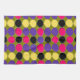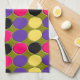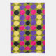 Dieses phantastische Küchenhandtuch ist mit lila, rosa gelben und schwarzen Flecken bedeckt, die in Reihen angeordnet sind, die durch dunkelgrüne Bereiche voneinander getrennt sind. Dieses fantastische abstrakte erinnert an eine Mauer, die nach einem Paintballspiel mit Farbtupfern bedeckt ist.
