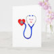 Informieren Sie einen guten Arzt oder eine Krankenschwester, wie sehr Sie sie schätzen, wenn Sie ein Stethoskop mit einem roten Herzstück mit blauem Schlauch vorfinden.