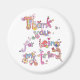 Ein Dankeschön auf einem Kühlschrankmagnet für die Betreuung, Liebe und Unterstützung eines Freundes. Hübsches Design mit winzigen Blume, Bändern und Schmetterlingen.