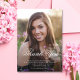 Elegante personalisierte Geburtstagsparty oder Abschluss Dankeschön-Karte mit individuellem Foto mit schwarzem Overlay. Sie können Textfarbe, Schriftart, Größe und Position leicht ändern, indem Sie auf den Knopf "IT ANPASSEN" klicken.
