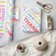 Ein lustiges und fröhliches Packpapier zu begleiten ein Dankeschön Geschenk. Das einfache Design enthält das Wort Dankeschön wiederholt in verschiedenen Farben und 20 verschiedenen Sprachen.