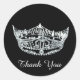 Vielen Dank für den runden Aufkleber in Schwarz mit einem Foto-Druck von einer Seite Königinnen Krone gezeigt. Passen Sie dieses Objekt an oder kaufen Sie, wie es ist.