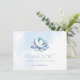 Dieses charmante Babyduschdesign besticht durch einen zauberhaften, wasserfarbenen Halbmond mit einer abstrakten, von Wolken umgebenen Babywand, eleganter Retro-Typografie und dem individuell anpassbaren hellblauen Text "Dankeschön-Karte".