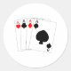 Aufkleberdeck aus Karten 4 Asse Design. Sie können diesen Aufkleber mit jedem beliebigen Text Ihrer Wahl anpassen. Wenn Sie Hilfe bei der Anpassung benötigen, kontaktieren Sie uns über den Link auf dieser Seite. Vier Asse entwerfen runde Aufkleber.