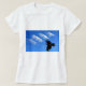 Vier federförmige Wolken standen am Himmel auf, mit einem raven, der im Vordergrund fliegt.
