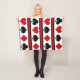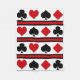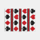 Set der Anzug-Symbole auf der Karte, abgeschieden auf schwarz, rot und weiß gestreiftem Hintergrund
