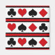 Set der Anzug-Symbole auf der Karte, abgeschieden auf schwarz, rot und weiß gestreiftem Hintergrund