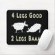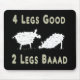 Zwei lustige Schafe illustrieren das berühmte Zitat "Vier Beine gut, zwei Beine schlecht" aus George Orwells Tierfarm. Der Spaß wurde entwickelt, um den Unterschied zwischen revolutionären Tieren (gut) und menschlichen Meistern (schlecht) zu zeigen, und wird von einem der Schafe eingeführt, die nur zwei Beine haben. Gut für das Grasessen - nicht so gut, wenn man auf eine andere Weide umziehen muss. Literatur, Sinn und ein humorvoller Schafe Cartoon.