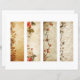 Vier Lesezeichen mit Blumenmuster auf Imitaten mit Vintagem/zerbrochenem Papierhintergrund. Jedes Lesezeichen misst beim Ausschneiden ca. 2 x 5,5 Zoll.