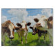 Vier plaudernde Kühe unterbrachen in ihrem täglichen Gör-Chat durch den Fotografen. Stehend auf der Wiese an einem schönen Sommertag mit einem großen cloudscape auf dem Hintergrund. Foto eingelassenes Friesland, das Zuhause der Frisiankühe. Halten Sie sie so für Außerirdischen in der Kuhgemeinschaft des Frisians, aber sie sind nette schauende Damen!