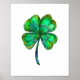 traditionelle Aquarellkunst eines vierblättriges Kleeblatt in leuchtend grünen Farben als dekorativer Plakatdruck