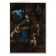 Vierge des Rochers de Léonard de Vinci, peinture à la tempête et à l'huile sur panneau de bois, représente la Vierge Marie, enfant du Christ, le nourrisson Jean Baptiste et un ange dans un paysage énigmatique sous une arche de rochers. L'une des deux versions de cette composition, la peinture est un exemple exemplaire de l'incomparable travail de dessinateur de Vinci et de la maîtrise de la forme humaine, sa maîtrise de la modélisation de chiaroscuro et la technique unique de sfumato ("fumé") de la lumière révélatrice forme. Léonard de Vinci (1452 - 1519) fut le plus grand maître de la Renaissance italienne haute et quintessence "homme de la Renaissance" dont l'oeuvre comme peintre, sculpteur, architecte, inventeur, anatomiste et bien plus est sans comparaison. Né près de Florence, en Italie, et apprenti au peintre Verrocchio, Leonardo a inventé de nombreuses nouvelles idées et étendu les principes du dessin de perspective, la perspective aérienne, la figure humaine et l'anatomie et beaucoup d'autres à des hauteurs jamais vu depuis, pendant la période de redécouverte des arts et de la philosophie de l'antiquité classique. Largement considéré comme le plus grand artiste qui ait jamais vécu, Leonardo a laissé très peu de peintures achevées, soit en raison de ses expériences agitées avec une technique de peinture qui parfois échouait, soit en raison de son infâme habitude de procrastination.