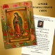 Avec une belle image catholique traditionnelle de Notre-Dame de Guadalupe, Vierge du Mexique avec des fleurs et des cactus sur un parchemin avec un arrière - plan de design floral. Tous les textes et polices sont en espagnol et peuvent être modifiés.