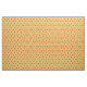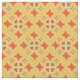Dies ist marokkanisch inspiriert, ein gerundetes Rautenkissen mit abgerundeten Ecken und Quarrafoils, im Wiederholmuster, Kunstwerke von Kristie Hubler, cremiger Maiskorn goldgelber Hintergrund, Elemente / Motive sind orange / kürbis & minzgrün
