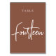 Einfache und schicke Tischnummer-Karten im Erdton Rost braun und Weiß machen eine elegante Aussage bei Ihrer Hochzeit oder Veranstaltung. Das Design bietet "table [number]" in einem spannenden Mix aus klassischen Serifen und handgeschriebenen Skripten. Design wiederholt sich auf beiden Seiten. Einzelne nummerierte Karten werden separat verkauft; bestellen Sie jede Tischnummer einzeln aus unserer Sammlung.