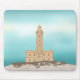 Eine Illustration des Leuchtturms von Vieste in Italien. Dieser Leuchtturm wird stehend auf seiner Rocky Island gezeichnet. Das Thema des Leuchtturms ist die Beleuchtung der Morgendämmerung oder des dunklen Himmels. Es ist auch bekannt als Isola Santa Eufemia. Es liegt zwischen den Felsen Santa Croce und San Francesco, gegenüber der Stadt Vieste, Apulien,