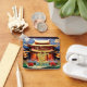 Vietnamesisch goldenes Drachenpapier geschnitten vor einem Tempel im Origami-Stil. Design auf quadratischem Schlüsselanhänger mit goldener Handschrift "Jahr des Drachen" vor und Monogram, um sich in der Rückseite anpassen. Passende Grußkarte, Urlaubspostkarte, Aufkleber und Tasse. Perfekt für das vietnamesische Neujahr des Drachen 2024.
