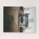 Un puzzle à l'image d'une maison délabrée des années 1920 dans un champ de hautes herbes en début d'automne.