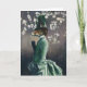 Diese Karte ist mit einem Viktorianischen Vichen in einem lebhaften Kleid Set vor einem Hintergrund von Magnolien illustriert.