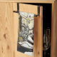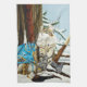 Norwegische Waldkatze sitzt an einem Baum mit blauem Drachen und sitzt in einem Flaschenhelm. Schnee um sie herum, Schwert und viking Axt mit ihnen.