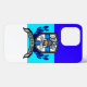 Das Wikinger- und Schild-Motiv ist dominiert von Blau und Weiß.