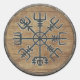 Vegvísir, auch bekannt als der Viking Compass, wird auf einem wunderschön verwitterten Holzschild-Hintergrund dargestellt, um Sie zu Ihrem Ziel zu führen.