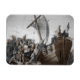 Stift zeichnend oder Abbildung eines Wikinger Boardings ein Mastboot. Kunstwerk von Knud Bergslien.