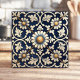 Diese atemberaubende, Viktorianisch inspiriert Kachel weist komplexe Elfenbeinküsten mit goldenen Zentren Set vor einem reichen marineblauen Hintergrund auf. Die zarte, blumengeschmückte Kreation schafft ein zeitloses Design, das Eleganz und Charme ausstrahlt. Diese Kachel eignet sich perfekt für Backsplashes, Akzent-Wände oder dekorative Projekte und bringt eine raffinierte Vintage Ästhetik in jeden Raum. Die gepflegten Details und die ausgeglichene Symmetrie machen es zu einem herausragenden Element sowohl in traditioneller als auch moderner Innenausstattung.