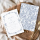 Erzählen Sie Ihren besonderen Tag mit einem Viktorianisch inspiriert Blumenstrauß Save the Date in elegantem staubblauem Blau. Dieses in Frankreich inspirierte Design zeichnet sich durch seine komplexen Blumenmuster aus, die zeitlose Romantik und Eleganz hervorrufen. Die sanfte, staubblaue Farbe verleiht der Touch eine ruhige und raffinierte Note, die sich perfekt für eine klassische und elegante Hochzeit eignet. Ideal für Paare, die einen anmutigen, aber einzigartigen Stil suchen, verbindet dieser Ort Save the Date Vintagen Charme mit moderner Schönheit und sorgt für ein ganz besonderes Fest.