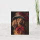 Feiern Sie die Saison mit einer Vintagen Touch - diese Weihnachtskarte präsentiert eine bezaubernde, rote Langhaarige Dackel in einem Viktorianischen Urlaubshut.