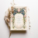 Genießen Sie den romantischen Charme des Viktorianischen Zeitalters mit dieser delikaten Hochzeitseinladung. Das Design ist eine weiche pastellfarbene Traumlandschaft, die eine Mischung aus Rosa, Salbei, Blau und Marineblau bietet und durch sanfte Touchs von Pfirsich und Creme verstärkt wird. Die Vorderseite der Einladung zeigt ein elegantes Blumenmotiv, das ein zentrales, goldfarbenes Monogramm umfasst, das die Verflechtung zweier Leben widerspiegelt. Im Hintergrund sind die einladenden Details durch eine üppige Anordnung von Blumen und Botanicals gerahmt, die an einen ruhigen englischen Garten erinnert, das ganze Set vor einem Vintagen Pergament-Hintergrund. Das fließende Jugendstil-inspirierte Linienwerk und das Flüstern von Pastelltönen auf dem hochwertigen Papier machen diese Einladung zu einer zeitlosen Ankündigung für Ihren besonderen Tag.