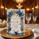 Setzen Sie mit diesem romantischen Design, das mit Wasserfarbe-Schwänen, staubblauen Blumen und eleganten falschen Goldakzenten versehen ist, einen anspruchsvollen Ton für Ihren besonderen Tag.