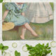 Diese süßen kleinen Mädchen machen eine Pause, um ihre heißen Füße zu trinken. Das ist eine schöne Abbildung aus dem späten 19. Jahrhundert, als Kinder im Garten in hübscher Kleidung spielten.