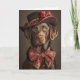 Feiern Sie die Saison mit einer Vintagen Touch - diese Weihnachtskarte präsentiert einen bezaubernden Schokoladenerlebnisreiter in einem Viktorianischen Urlaubshut.