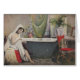 Vintage Postkarte Viktorianische Badzeit der Frau, basierend auf einem antiken Bild. Antike Badewanne Fotografin Künstlerin lustig.