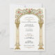 Dieses Viktorianische Hochzeitsdinner lädt Sie mit einem großen, goldenen Bogen und kletternden Weinreben aus rosa Rosen und zarter Vegetation ein. Die aufwändigen Blumendetails und das klassische Säulendesign strahlen zeitlose Eleganz und romantischen Charme aus. Ideal für Paare, die eine Vintag inspirierte Hochzeitsstätte mit einer luxuriösen Ästhetik und einer Touch von Blumeneleganz suchen.