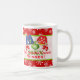 Votre fête festive et amusante de Noël ou de Vacances en pull sera d'autant plus complète avec cette tasse en céramique customisée comme prix pour le gagnant du concours de pull laid. Les deux chaudières kitsch saute de l'arrière - plan motif de flocons rouges et blancs avec un ornement vert suspendu, deux paires de mitaines, un bonhomme de neige, sucre de canne, bas et têtes Père Noël. Ajoutez simplement l'année dans la zone de texte fournie ou personnalisez-la comme vous voulez. Si vous avez besoin d'aide pour customiser cette tasse humoristique pour votre fête, envoyez un courriel à niteowlstudio@gmail.com .